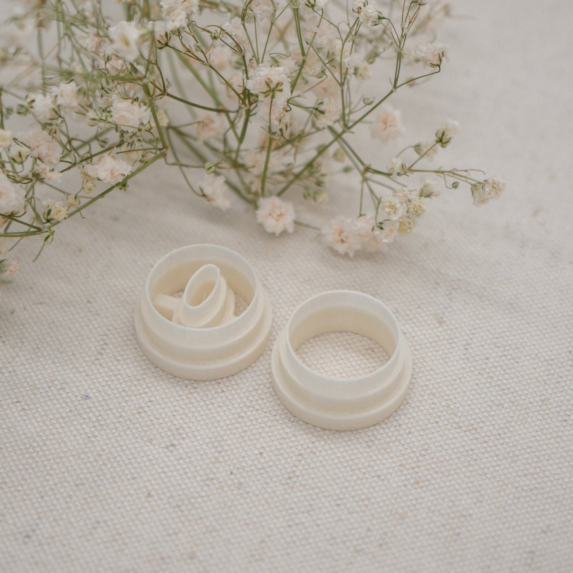 Made out of PLA filament. Each cutter has a 0.4 mm cutting edge.